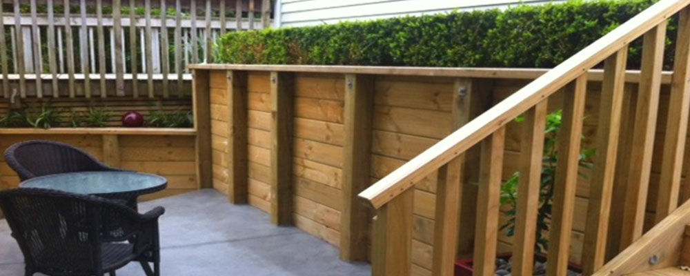Could the retaining wall, garage and stairs be rebuilt and the garden designed to produce a welcoming entranceway to the house and a small, private courtyard to enjoy the winter sun?